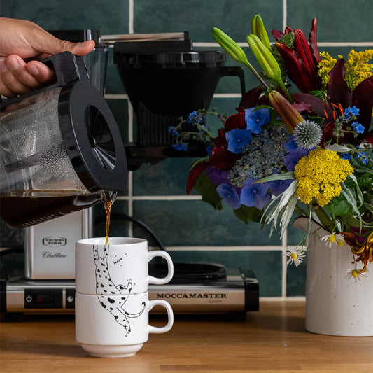 Porcelain Set of 2 Stackable Mugs - Meow