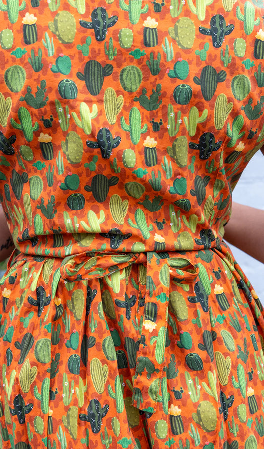 Run & Fly Orange Cactus Stretch Tea Dress with Pockets - 10 only!