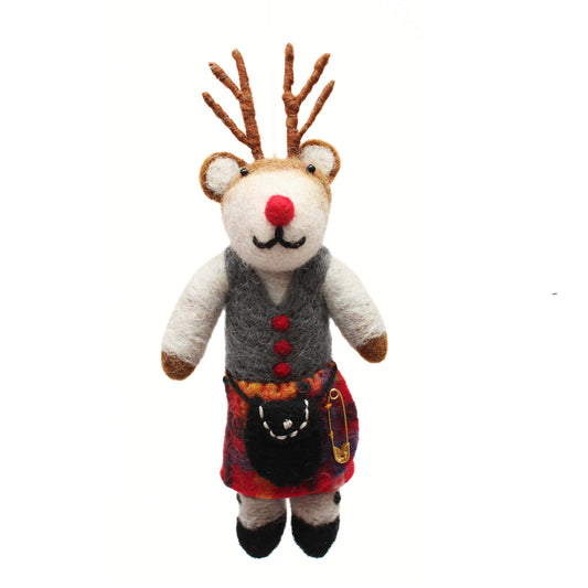Felt Hanging Decoration - Reindeer In Kilt (2 Assorted Designs)