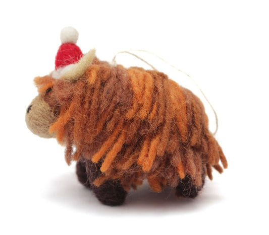 Felt Hanging Decoration - Mini Christmas Highland Cow