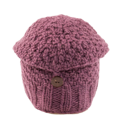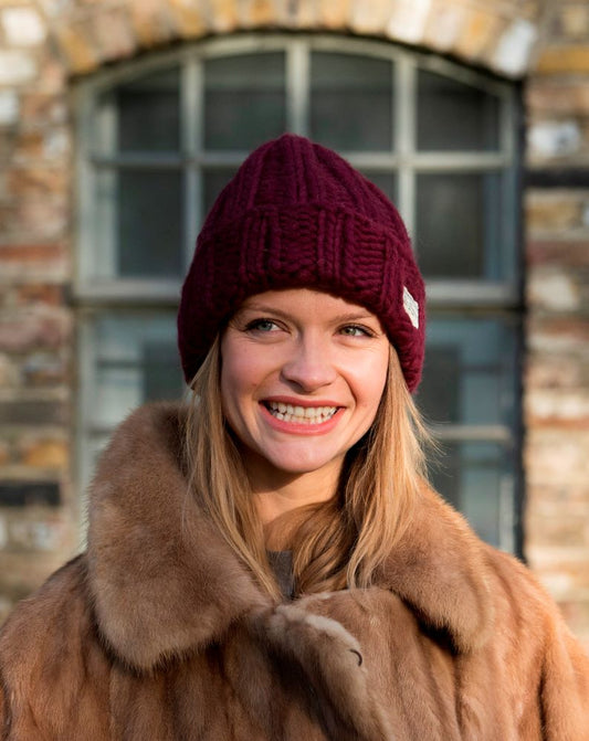 KuSan Beanie Turn Up Thick Yarn (Plum)
