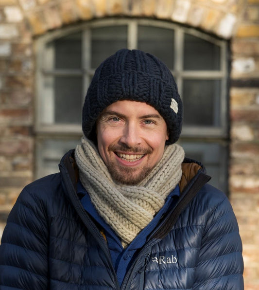 KuSan Beanie Turn Up Thick Yarn (Navy)