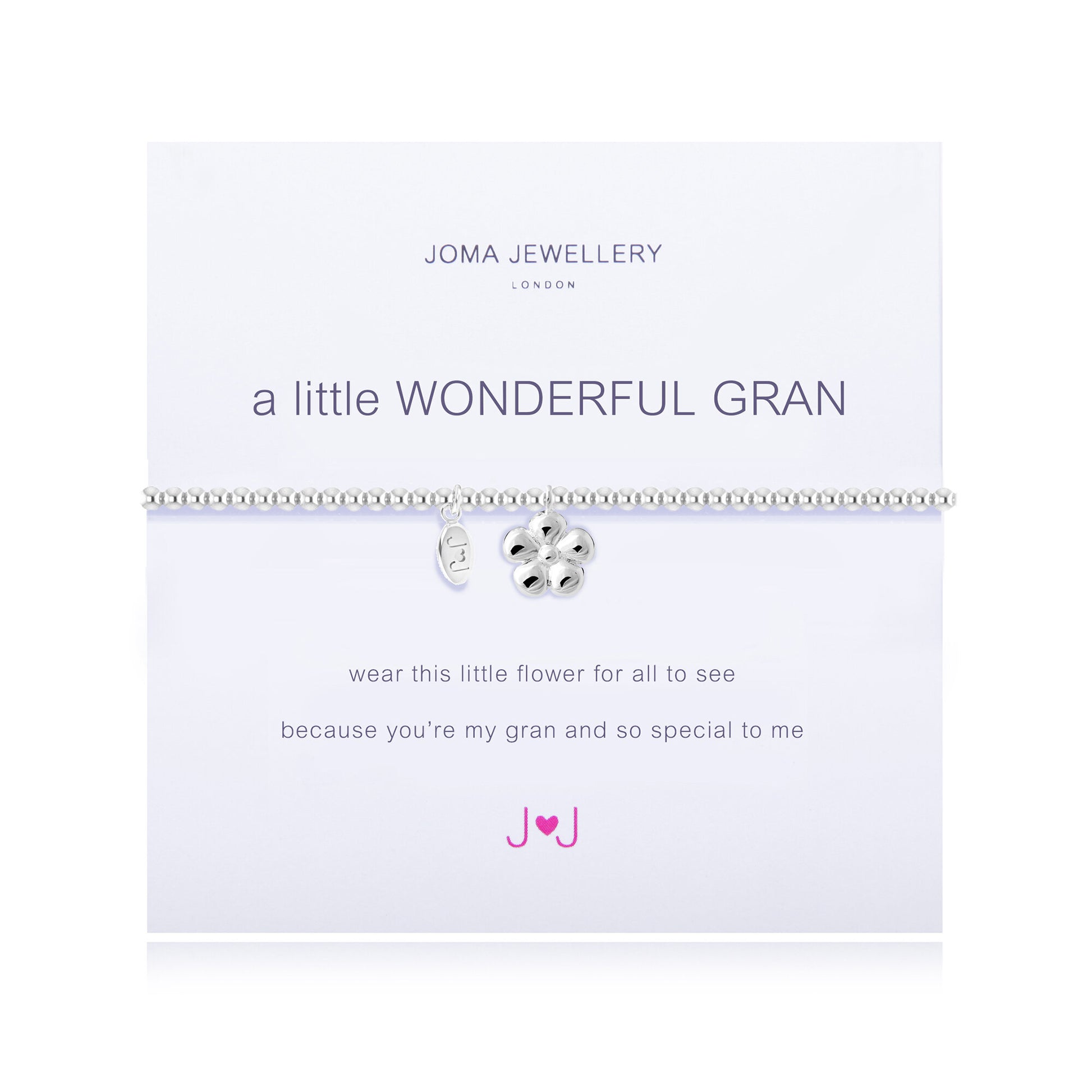 Show your Wonderful Gran how much you care with this ‘A Little’ bracelet. Threaded with silver-plated beads and a delicate flower charm, this bracelet is perfect for grans who prefer a more classic look. Stamped with a meaningful poem and accompanied by one of our iconic stylised cards, this little treasure is truly something she’ll cherish forever.