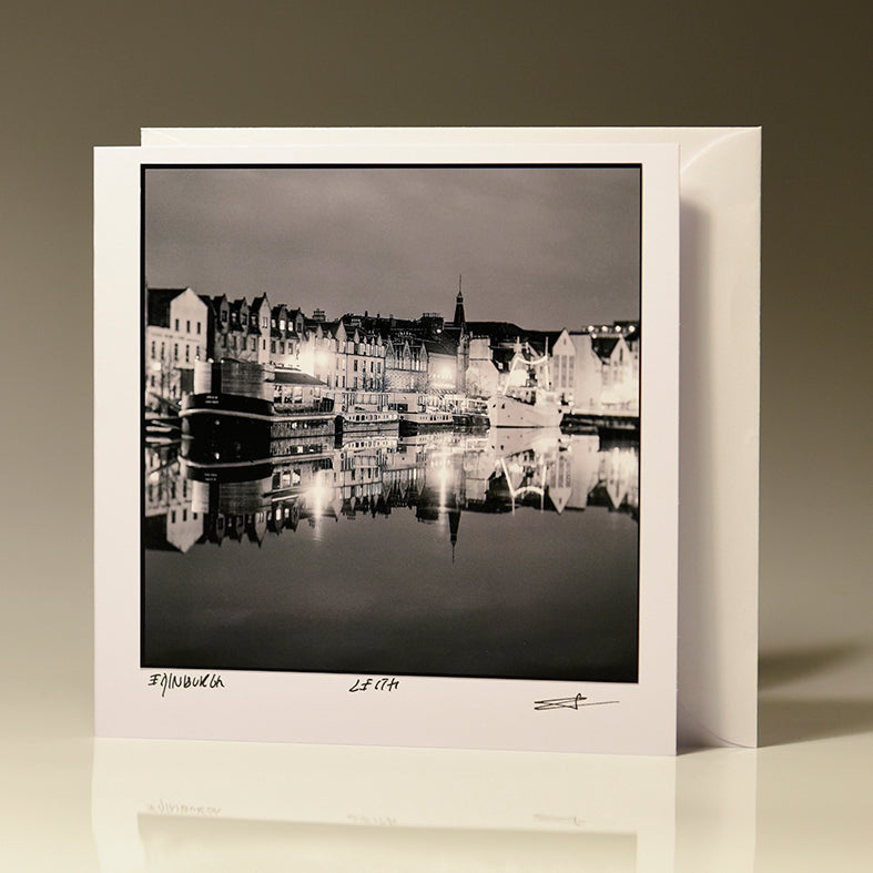 Blank Photograph Card Leith Boats Night Reflection by Daniel Dabrowski