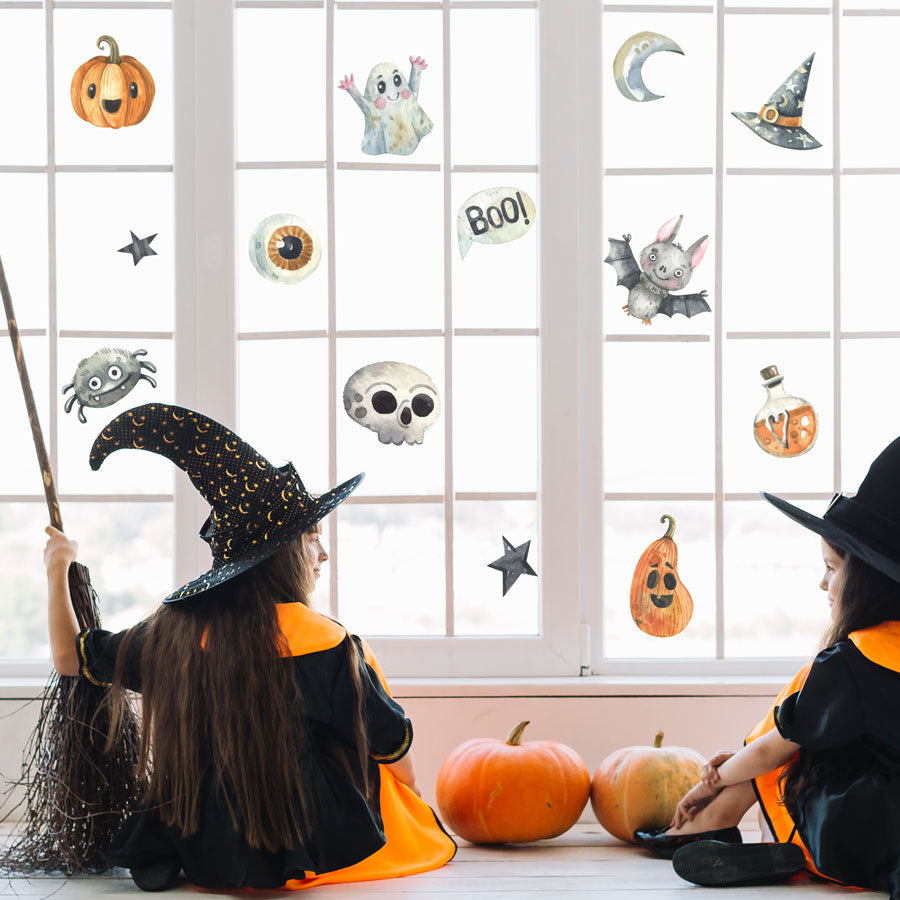 These watercolour Halloween window stickers are perfect for getting your home Halloween-ready this Autumn. Each pack includes thirteen fun Halloween stickers, ideal for decorating any window spaces you may have. This lovely set isn’t too scary for younger children, but will definitely add some seasonal fun to a room. The pack includes a cute ghost, two pumpkins, a friendly bat, skull, potion, moon, stars, and more