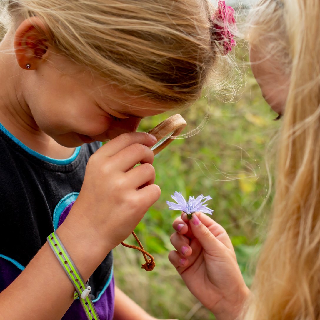 Eye Spy...the perfect explorer's tool! The Huckleberry Dual Magnifier is easy to use and magnifies any tiny outdoor treasure. Take it hiking, exploring, or just searching around your home. Little adventurers love getting up close and personal with bugs, insects, leaves, and more. A portion of Huckleberry sales benefits Children & Nature Network.