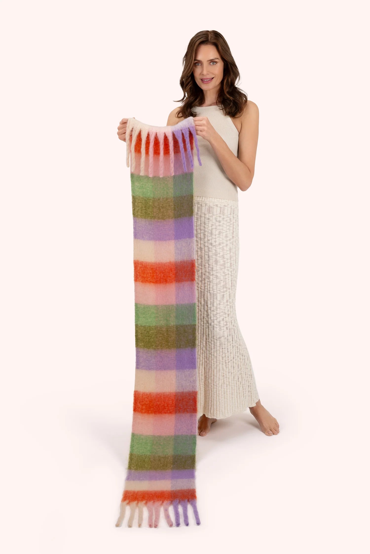 The Molly Cosy Scarf in Lavender Mix brings together soft, harmonious shades in a beautifully balanced check pattern that feels fresh and inviting. Its generous size and gentle texture make it an effortless choice for layering during the cooler months, adding both comfort and a touch of personality to your outfit.