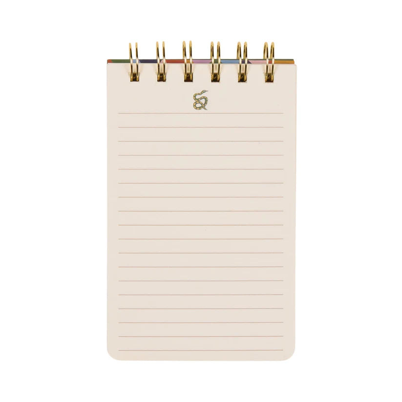3.5" x 5.75" Notepad • 80 Lined Sheets • Gold Twin Wire Binding • Printed with Soy Ink on 100 GSM Uncoated Woodfree, Acid-Free Paper