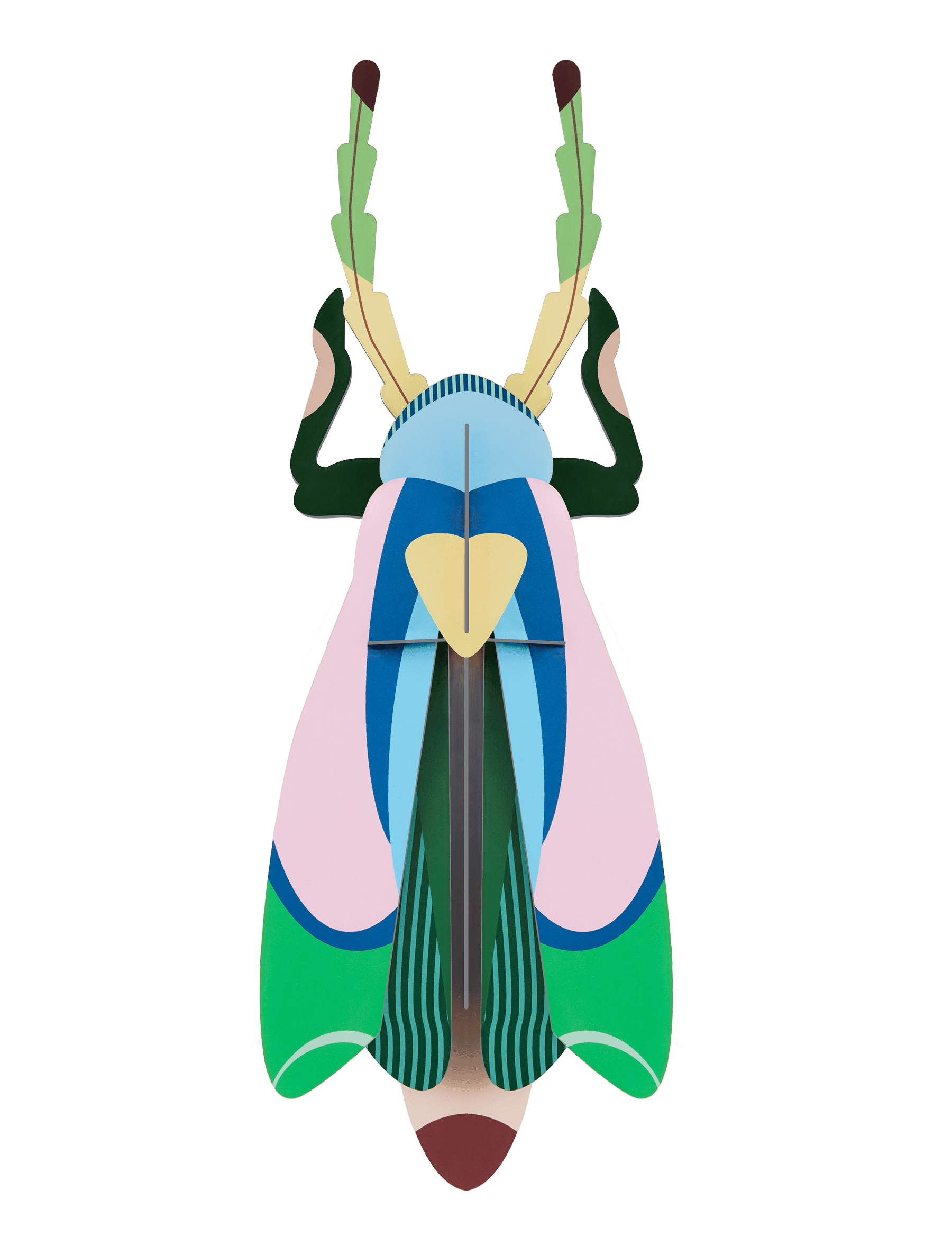 In real animal life, they inconspicuously scuttle about under leaves and on branches, but these flamboyant and colourful beetles – from every corner of the world – look as if they have just stepped off the catwalk. Give them a place among your artistic treasures, hang them on the wall, let them crawl around on your table and create your own insect story.