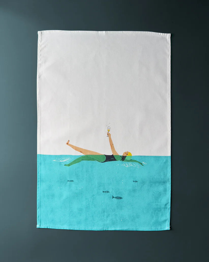 Swim & Fizz Tea Towel. Illustrated Tea Towel featuring the Swim & Fizz artwork by Oldfield Design Co.